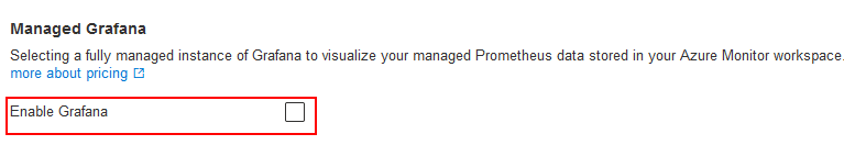 This option will kick off a deployment that will also add the Grafana Managed service with a URL to access Grafana interface.