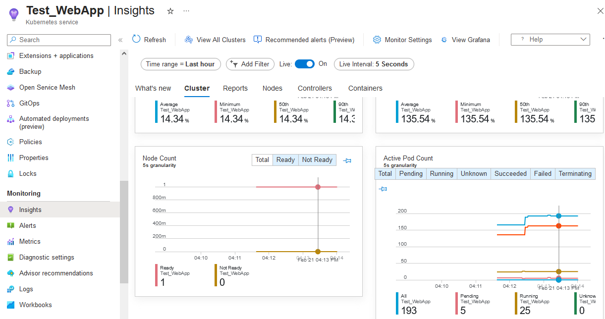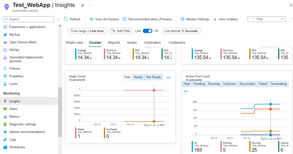 Data will eventually start populating after a period of time. Once the data is flowing in, we can also enable ‘live‘ mode to see the metrics live.