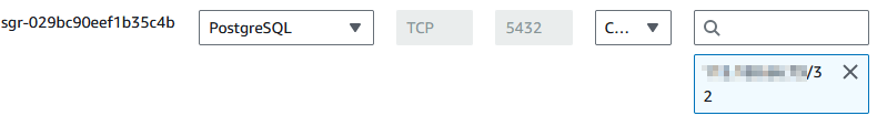 Add an inbound rule to the security group allowing access to the postgres port from the public IP address of the local host.