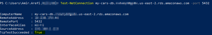 We can test the connection using PowerShell as below:
