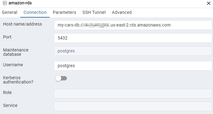 At this point you we can use any suitable DB tool such as DB Beaver or PgAdmin to connect to our instance. I used PgAdmin for this task.